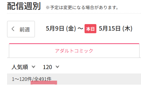 FANZAをのぞくと1週間(5/9~5/15)で491件もの漫画が新発売となっていました。