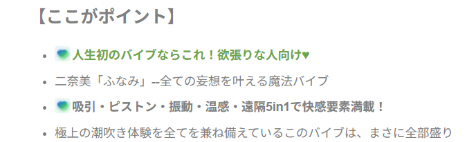 グッズの推しポイントがずらっと箇条書きになっていたり