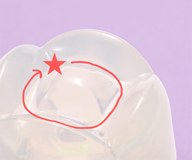 ★の位置に乳首をあてて、へこんでいる部分でぐるっと一周させる、かもしくは