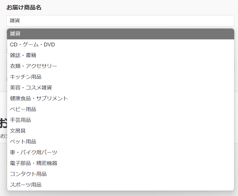 品名は何も選択しなければ「雑貨」となりますし